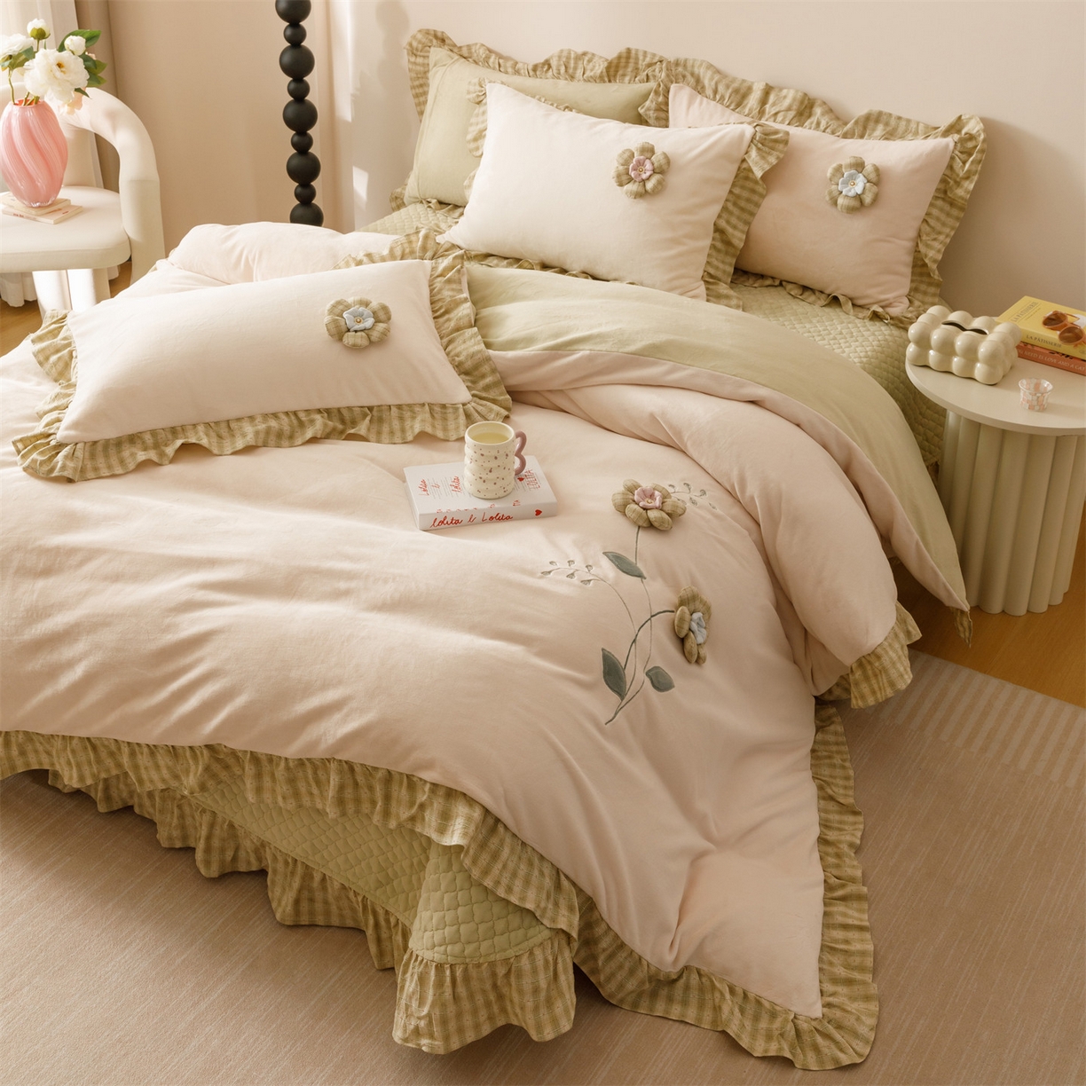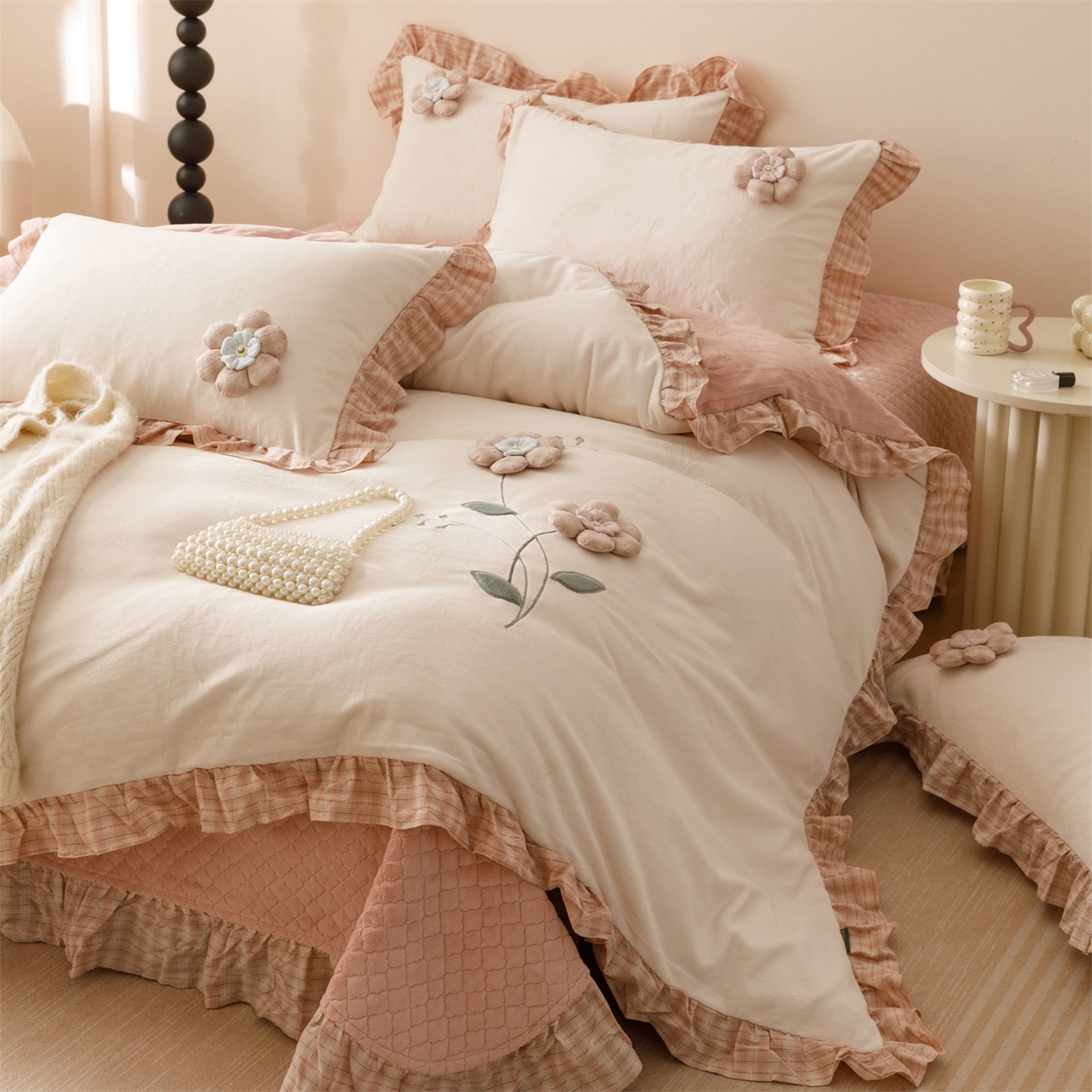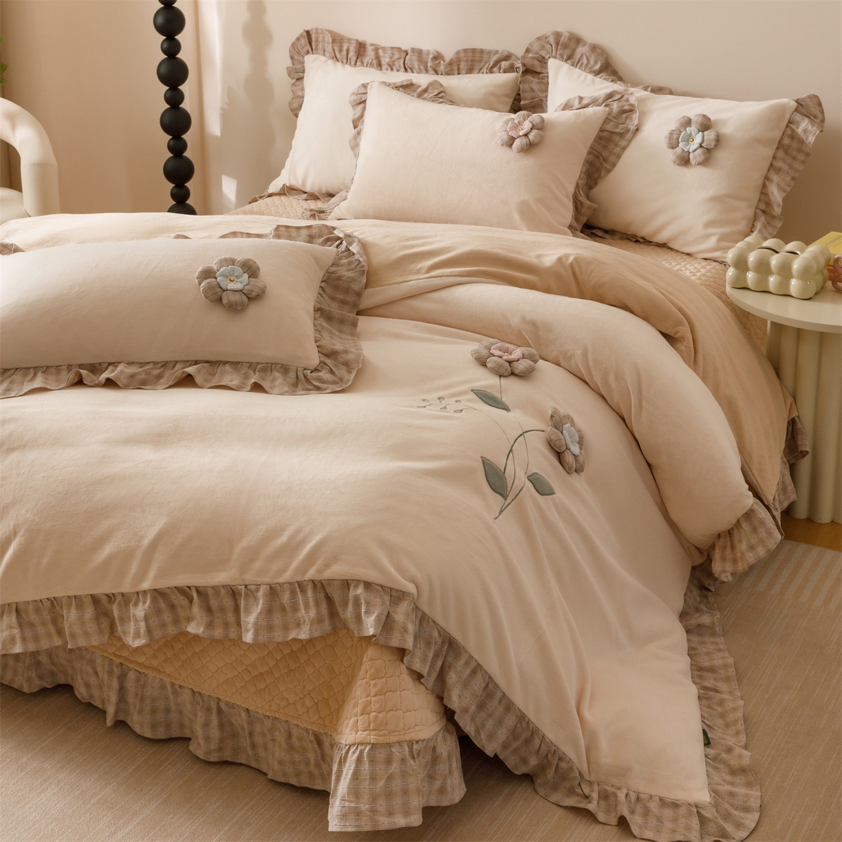 当前位置: 瑞米家居> 产品中心 > 2025新款韩版暖绒绒床盖绣花四件套-花叶凝香